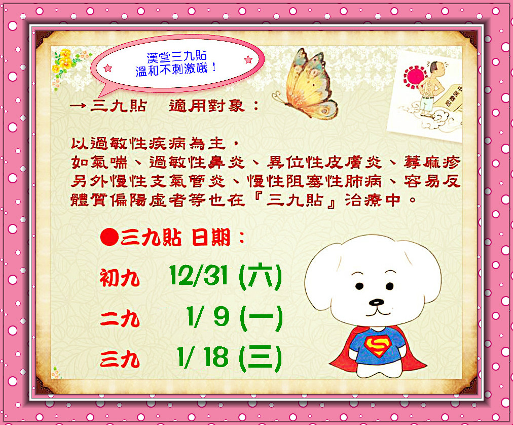 1/9 是三九貼的二九日,有預約的朋友們要記得來貼喔~