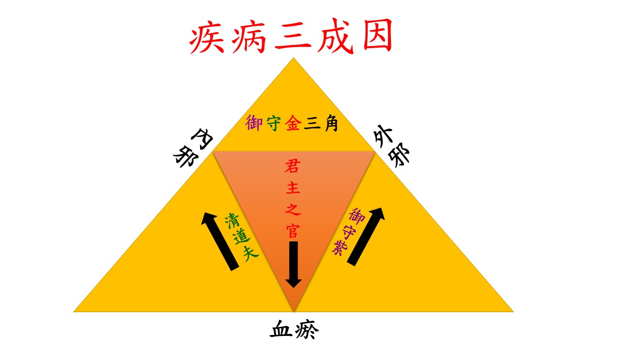 疾病三成因,御守金三角。【御守紫】是將外來的風邪從體表排出去的。當您的不舒服感減輕時,就可以先停止服用【御守紫】,這樣叫做中病即止。如果再過度服用,藥勢一直往上,就容易產生口渴。